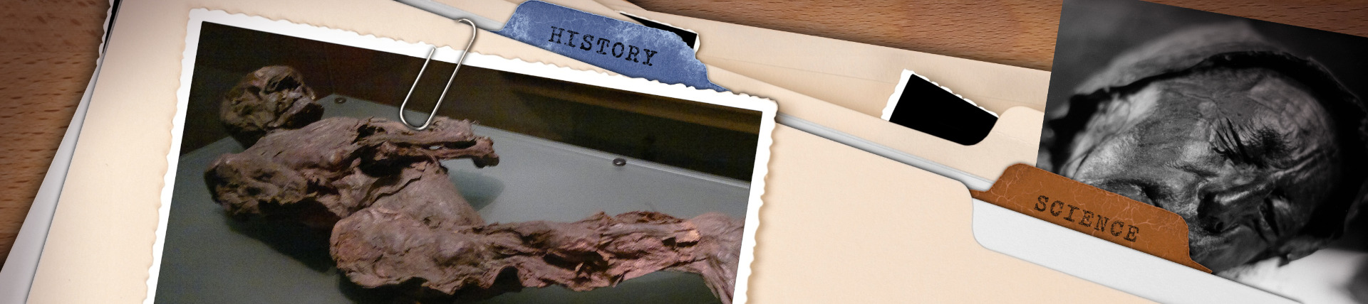 Of note: Is the best preserved body of all the ones found to date; only hands and arms are skeletal. Clothing either disintegrated or he was buried wearing only a pointed cap made of sheepskin and an oxhide belt