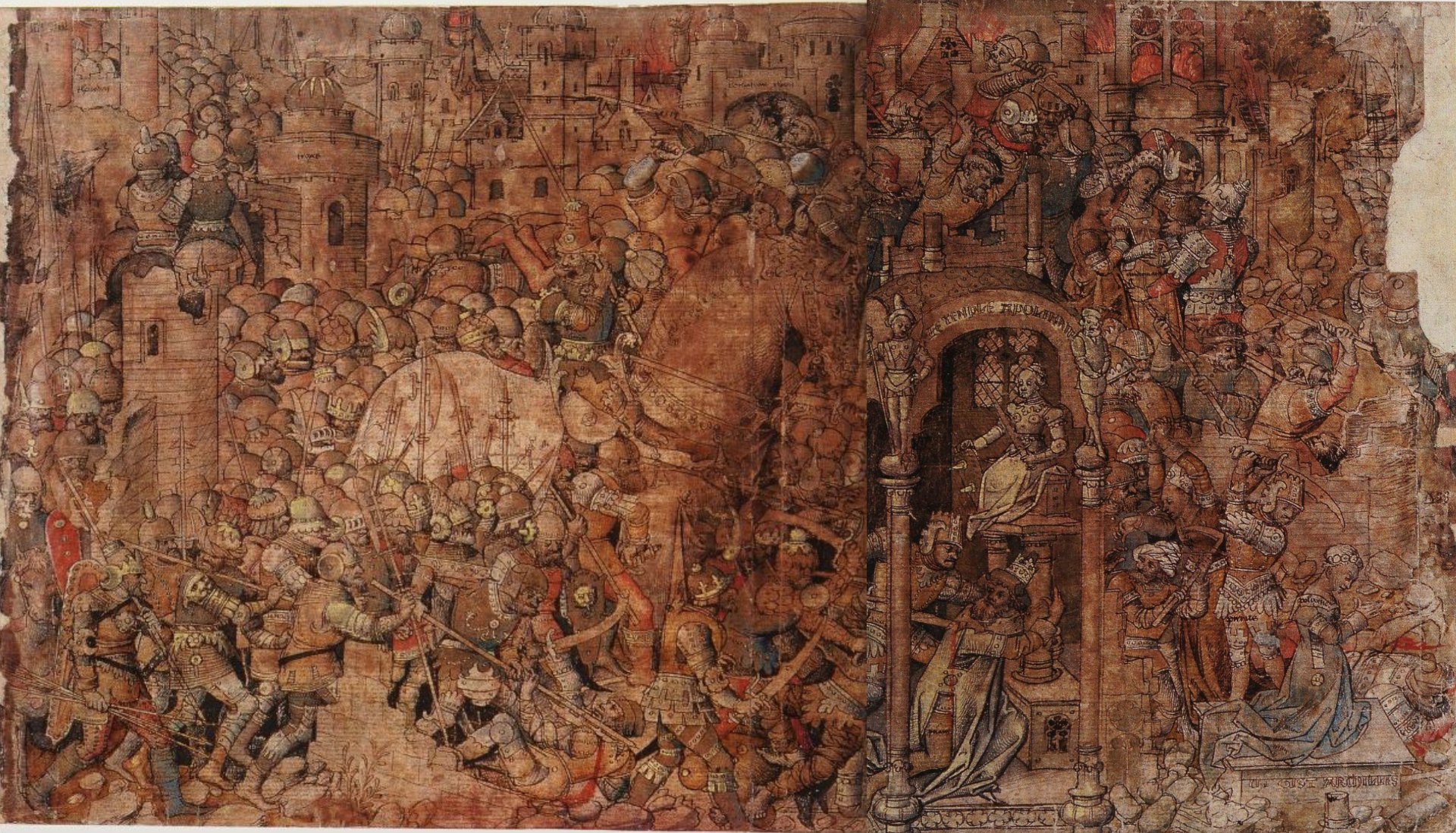 [Petit patron sketch of the massive "The Great History of Troy" tapestry set. It was said to have consisted of 11 pieces and unfortunately none survived to today, so the sketch is all that remains]