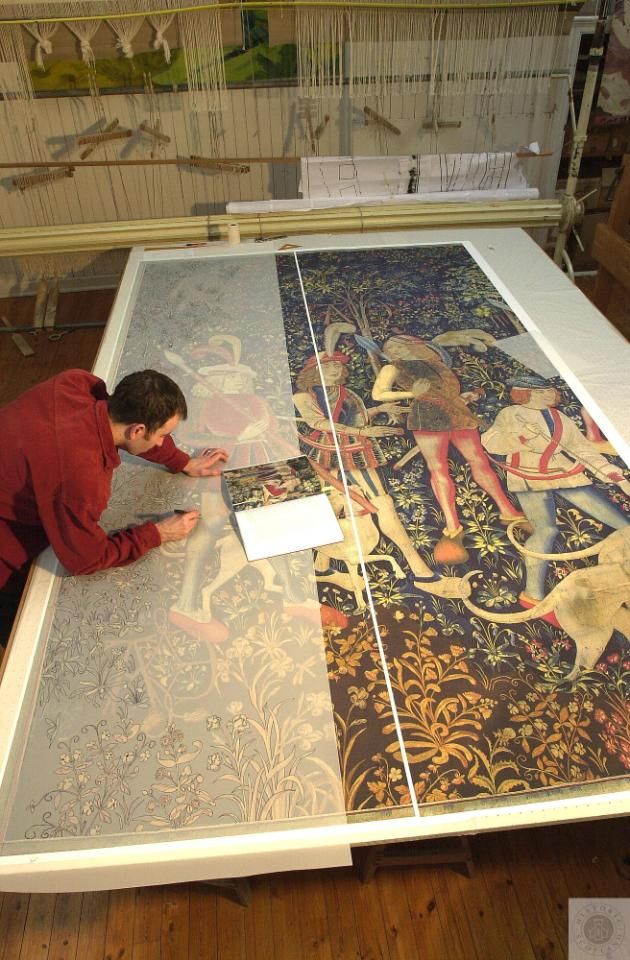 Weavers were many, with clusters of workshops in every major city. It's thought that the persons who did the weaving wasn't the same person doing the designs and that designs may have been shared between different workshops (or even stolen). Many of the designs of these unicorn tapestries are reminiscent of work by the painter Jean D'Ypres in the early 1500s, known for doing work in service of royalty and he came from a line of painters, his father, grandfather and brother were all reasonably well known artists of their time so may have contributed to the design of the tapestries