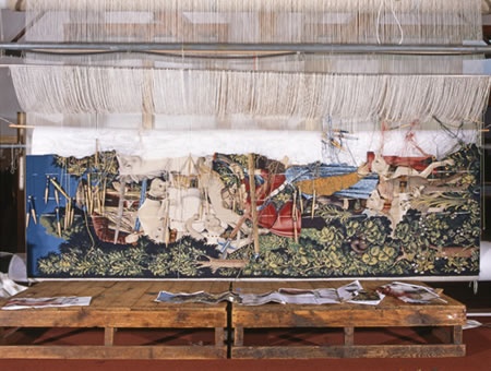 The list of persons directly responsible for the making of the Unicorn Tapestries, if such a list existed, would undoubtedly be a long one. First of all there would be the man or woman who conceived the idea for the general subject matter and for the details of the story. Then there would be the designer or designers who drew the preliminary sketches {petits patrons) and the painter who executed the full-scale patrons or cartoons on large linen sheets or on strips of paper pasted together. There would be the dyers of the fine silk and woolen threads and those who prepared the metallic threads by winding strips of silver or gilded silver around strands of silk, all to be used as the wefts for creating the designs. There would be the workmen who set up the enormous looms with heavy, undyed woolen warps, and the many weavers who worked side by side on these looms day after day with their bobbins of colored wools and silks, producing in textile form the scenes in the painted cartoons. And, of course, there would also be the wealthy patron who commissioned the tapestries and paid for the well-done, certainly expensive job.- Margaret B Freeman - The Unicorn Tapestries